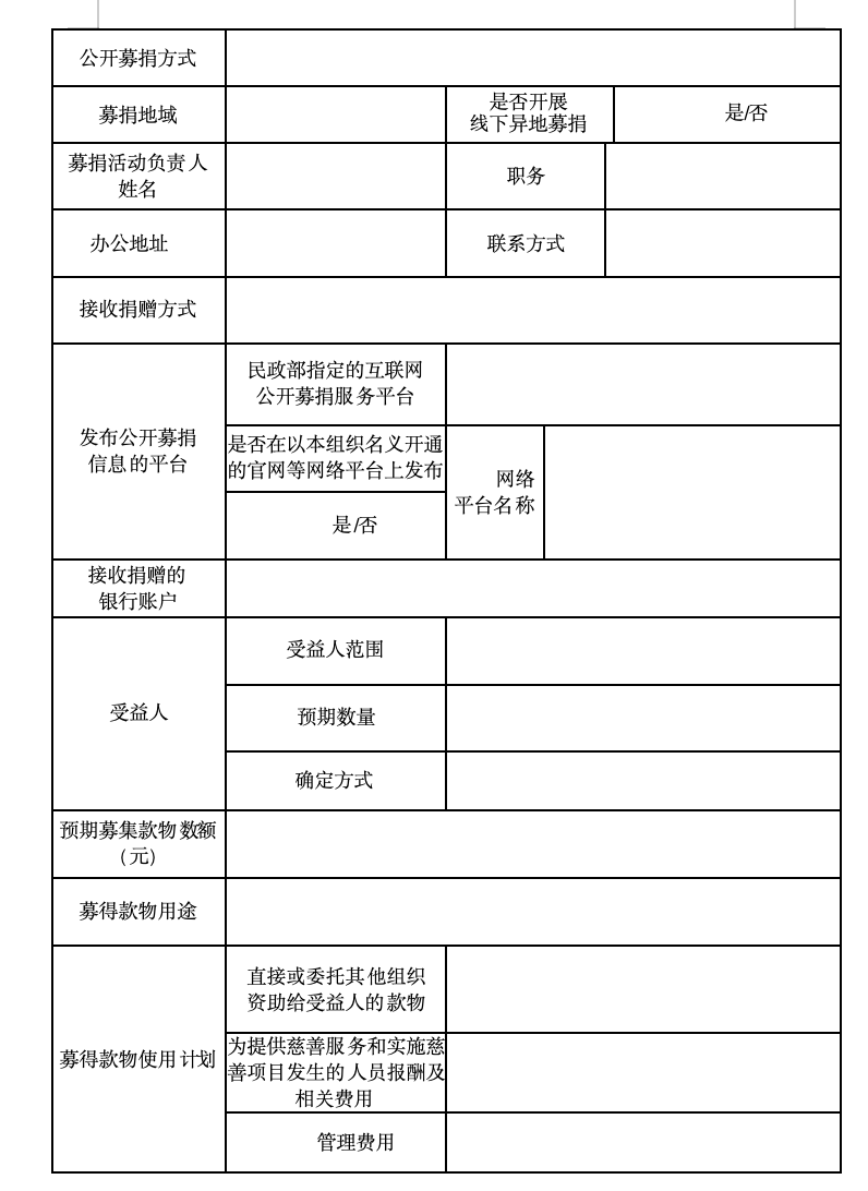 附1:慈善组织公开募捐方案备案表(模板)
